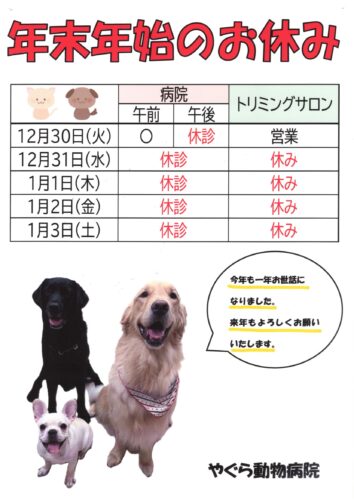年末年始の休診のお知らせ